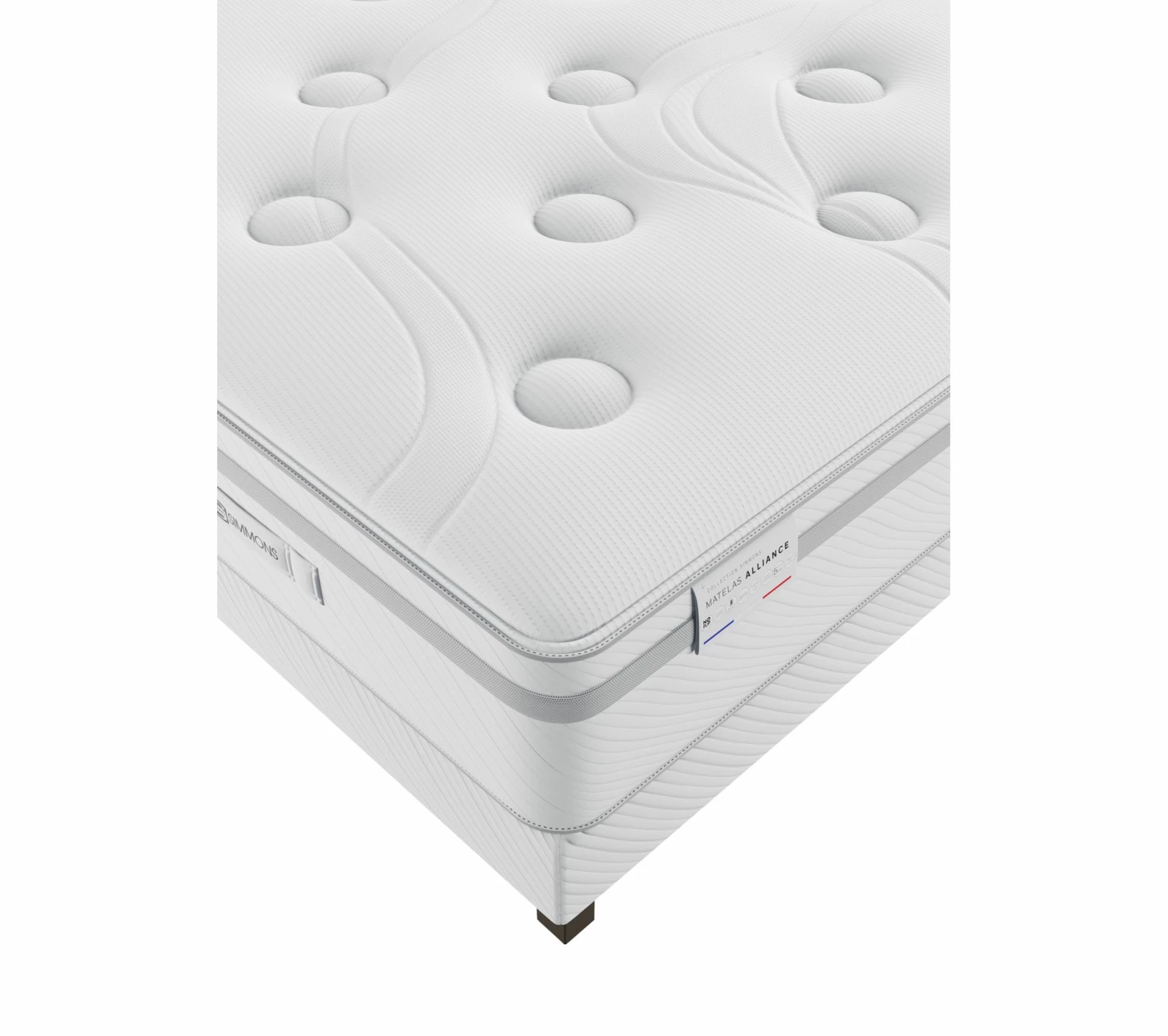 - Garnissage ouate DacronÂź 300 g/mÂČ + mousse confort 22 kg/mÂł 17 mm + cachemire, lin et soie 100 g/mÂČ + mousse polyurĂ©thane HR 35 kg/mÂł 30 mm + mousse Ă mĂ©moire de forme 48 kg/mÂł 40 mm. Couche de fibres recyclĂ©es 320 g/mÂČ cĂŽtĂ© face de couchage.
