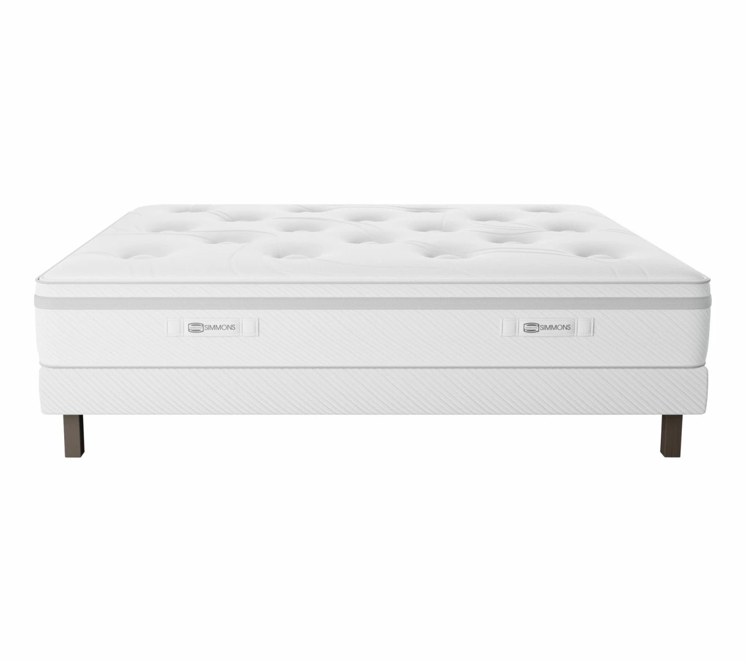 Ce matelas SIMMONS se compose d’une partie supérieure souple qui promet un accueil parfaitement moelleux, d’une partie centrale plus réactive et ferme, et d’une partie inférieure qui absorbe les mouvements. Grâce à sa couche de mousse à mémoire de forme, ce matelas blanc est capable de s’ajuster progressivement aux courbes du corps et d’amplifier le soutien. Vous bénéficiez donc d’un couchage ferme, tout en vous sentant enveloppé dans un nuage de douceur. Le garnissage de ce matelas à ressorts mêle de la ouate Dacron® 300 g/m² à de la mousse confort 22 kg/m³ 17 mm, du cachemire, du lin et de la soie 100 g/m², de la mousse polyuréthane HR 35 kg/m³ 30 mm et de la mousse à mémoire de forme 48 kg/m³ 40 mm. Il procure un soulagement des points de pression et permet un relâchement musculaire.