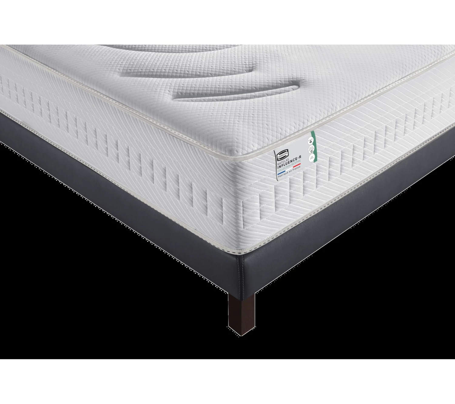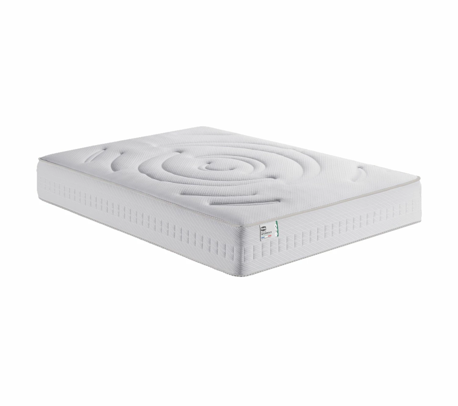 Ce matelas pour grand lit 2 personnesbénéficie de 1 122 ressortsensachés et d’une suspension Fullspring. Ces caractéristiques vous garantissent une totale indépendance de couchage, qui prévient les micro-réveils liés aux mouvements de votre partenaire. Le garnissage haut de gamme de ce matelas blancassure un accueil morphologique et un soutien ferme. Par ailleurs, la couche de latex perforé s’adapte à toutes les corpulences et à toutes les positions de sommeil. Ses alvéoles offrent une excellente ventilation naturelle. Atout non négligeable et écologique : l’acier des ressorts est composé de 90 % d’alliage de fer recyclé, qui vous permet de profiter d’un confort durable, tout en favorisant l’économie circulaire.