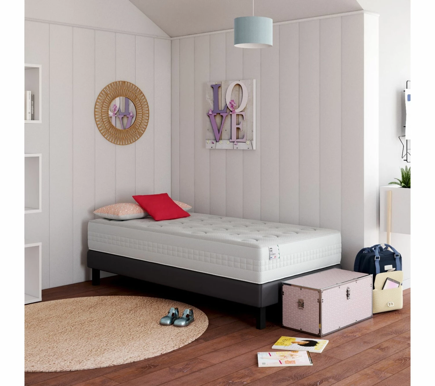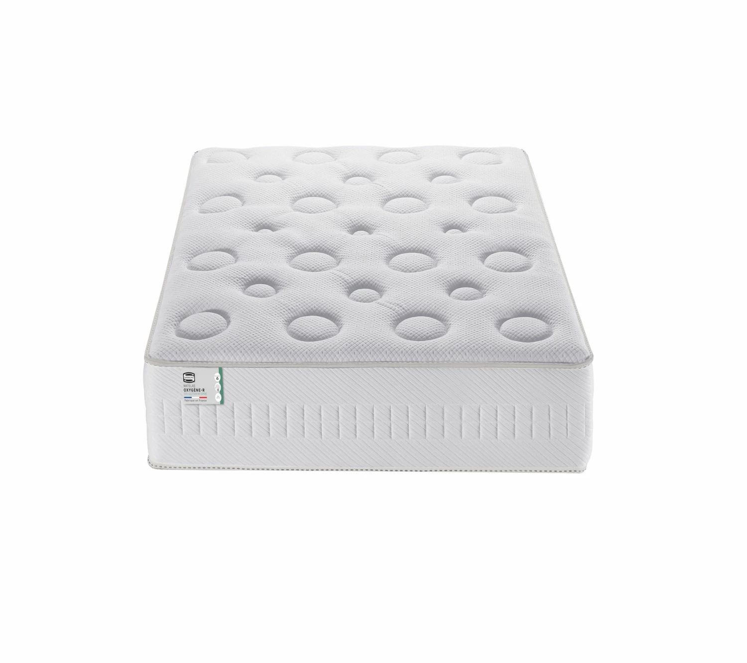 - Tissu micro-aéré et complexe ouatiné en fibres polyester recyclées : une parfaite hygiène du matelas, action d’auto-ventilation et de régulation de la température en toutes saisons.