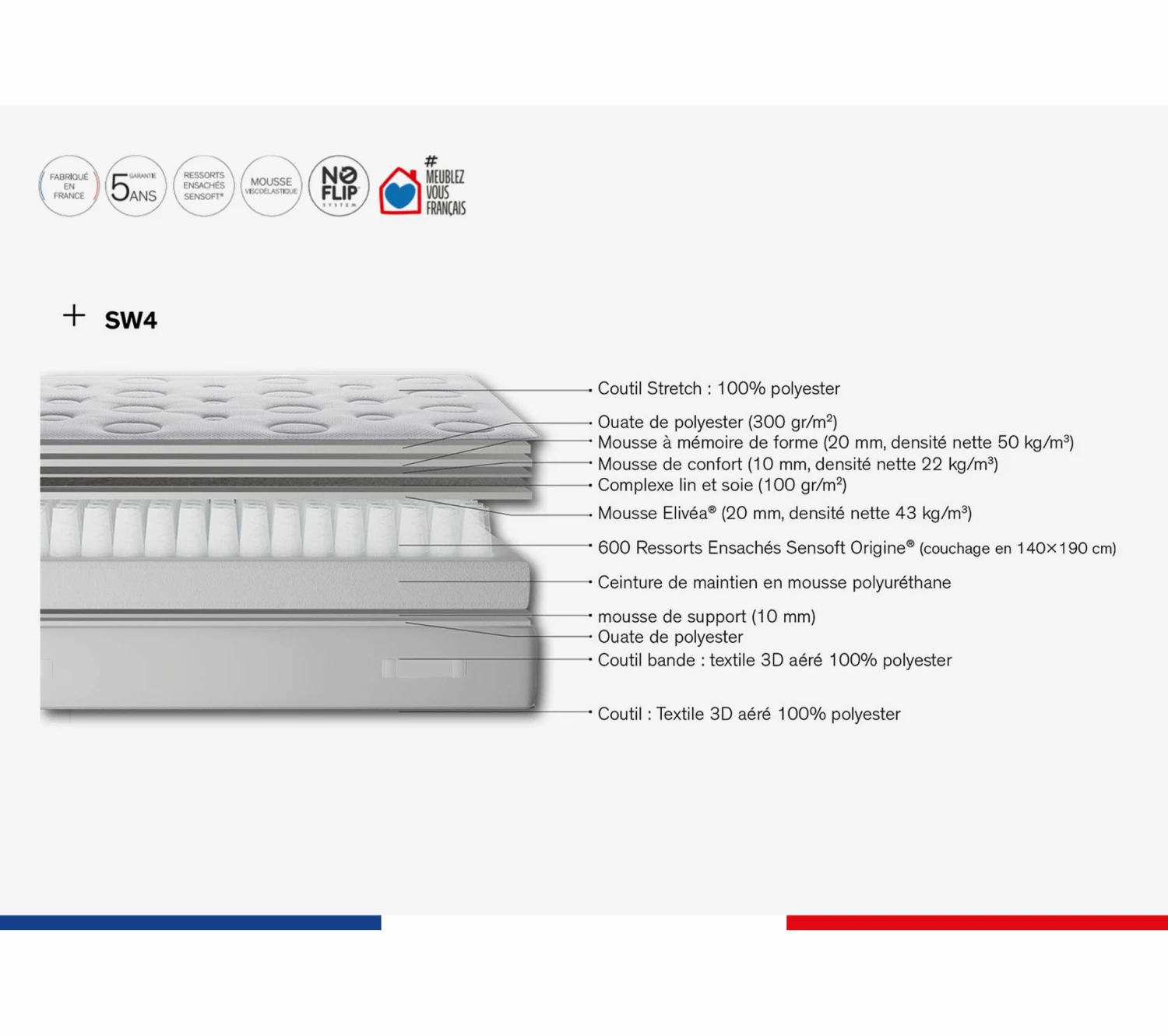 Limite les micro-réveils grâce à l indépendance de couchage des ressorts ensachés Sensoft Origine