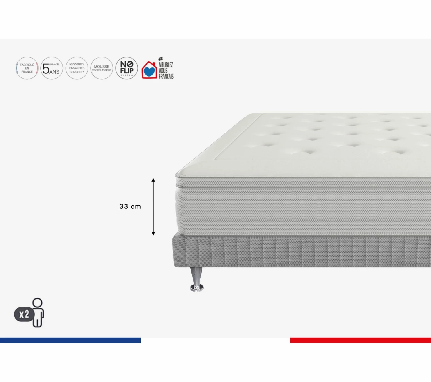 Le tout 100% Made in France ! Les modèles Simmons sont en effet travaillés à la main et assemblés avec soin dans nos usines françaises.